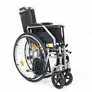 Съемные антиопрокидыватели делают езду в гору безопасной. Коляска снабжена откидными подножками и стояночным тормозом, что делает пересаживание человека из коляски и в неё более безопасным и удобным.